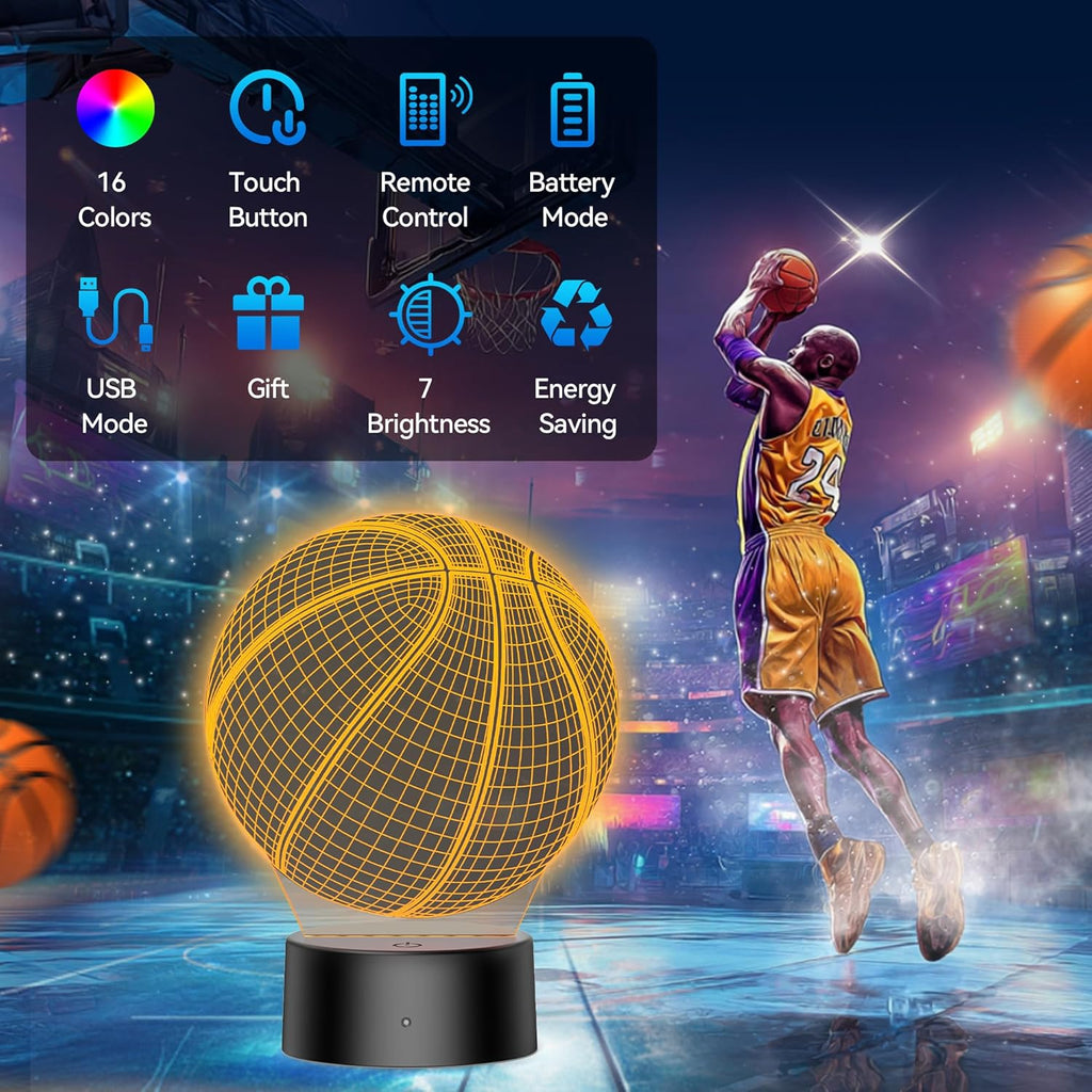 3D basketball night light is a perfect basketball gift for boys, girls and sports fans, Easter gift or other commemorative gift for children. This basketball 3D night light will bring a good night and sleep atmosphere to the bedroom, its color change and 3D visual appearance, ideal for home decoration, bedroom decoration, children's room decoration and boys bedroom decoration.