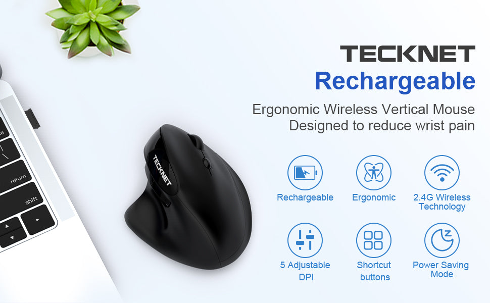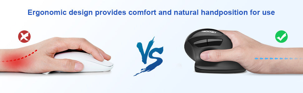 The vertical ergonomic design can support your palm firmly and effectively reduce the pains of mouse arms or tennis elbows (RSI syndrome). Good choice for people using mice a long time every day.