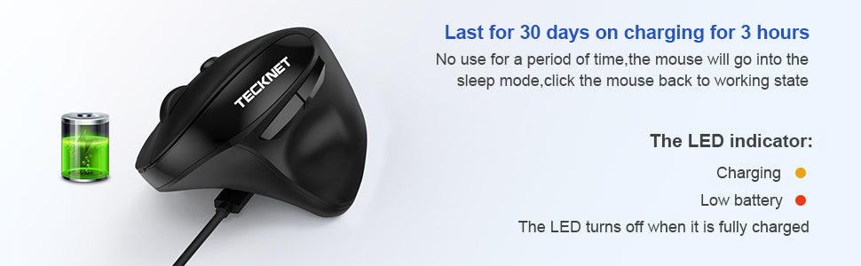 With 300mAh battery capacity, it lasts for one month on a full charge. No need to change batteries any more, and the mouse has own switch to turn on/off, thus saving unnecessary battery consumption.