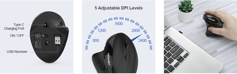 5 Adjustable DPI (800-1200-1600-2000-2400) ensures greater sensitivity and enables you to control the speed of the mouse freely.