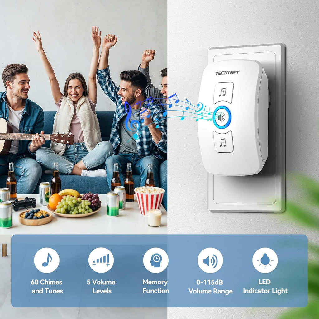 Each receiver in TECKNET wireless door bells feature a bright LED indicator that flashes whenever someone presses the transmitter. It's an ideal solution for users with hearing impairments —providing a gentle, visible cue without disruptive noise. With TECKNET doorbell, you'll never miss a knock, no matter the noise level around you